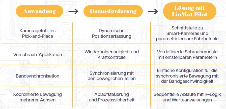 Wir arbeiten bereits an neuen Funktionspaketen, unter anderem für bandgeführte Prozesse, Smart-Kamera-Anwendungen, Verschraublösungen und erweitertes Process Monitoring. LinMot Pilot wächst mit den Anforderungen unserer Kunden.