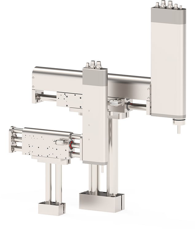 The pick-and-place modules PP05 are standardised multi-axis systems with a linear-rotary axis in the Z direction that enables a wide range of pick-rotate-and-place tasks in a minimum of space. For passive compensation of the weight force, the PR02 linear rotary motors can also be equipped with a MagSpring®.