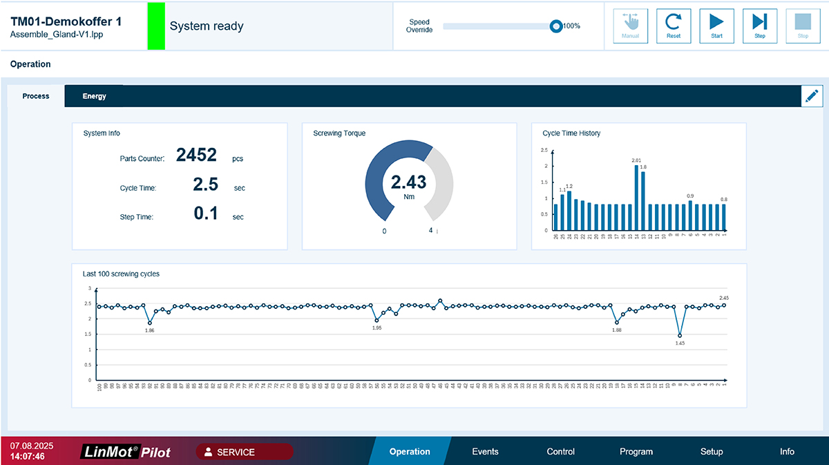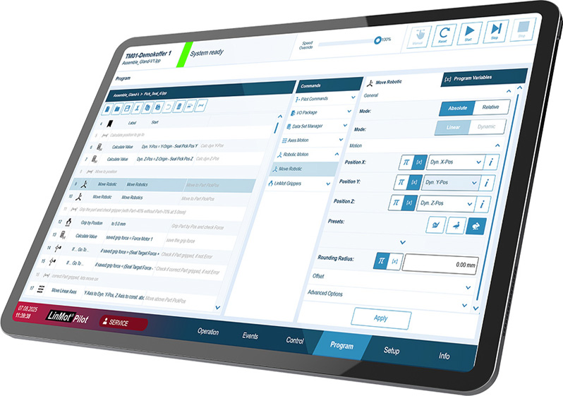 LinMot Pilot is an intuitive, no-code robot control for multi-axis LinMot systems that requires no PLC or programming knowledge.